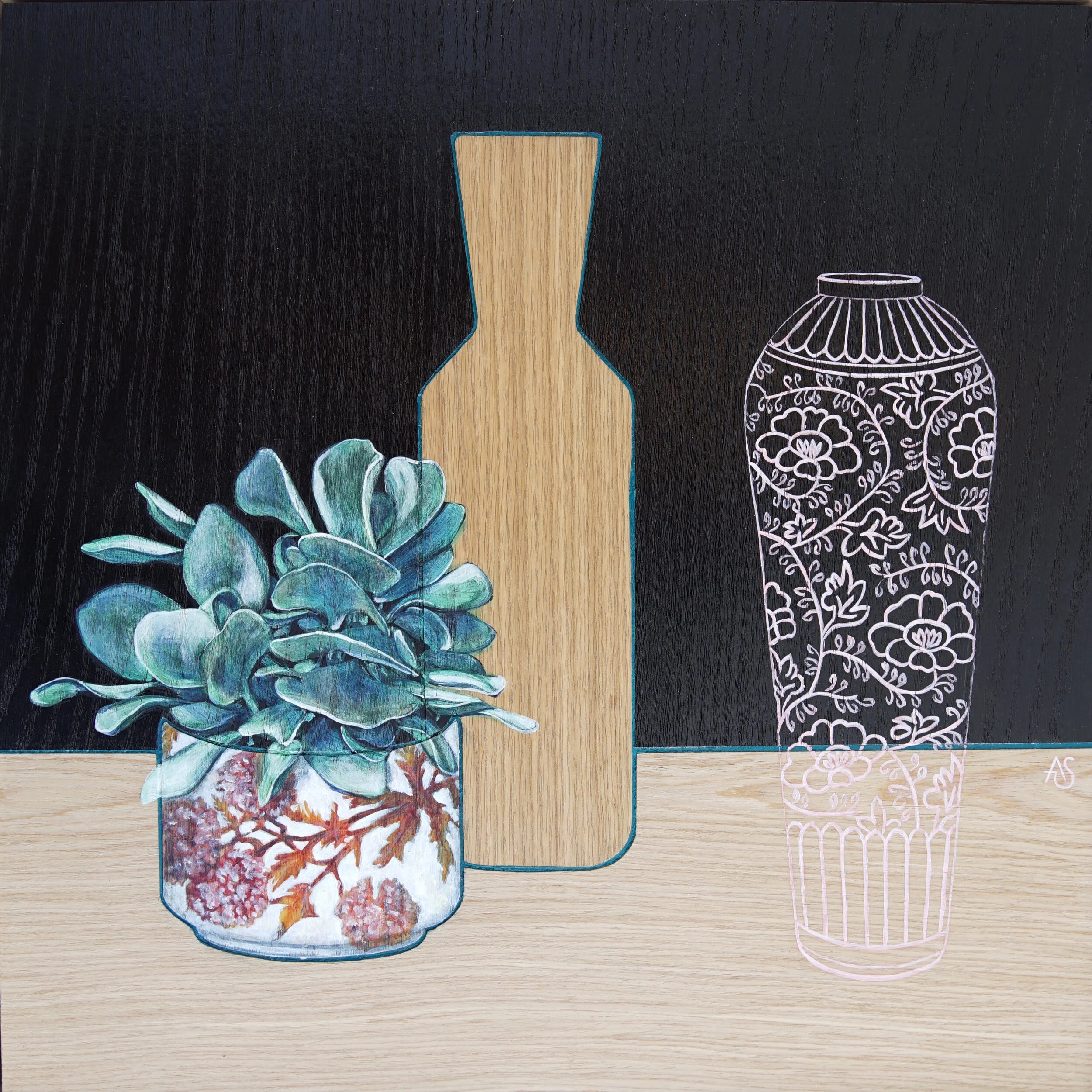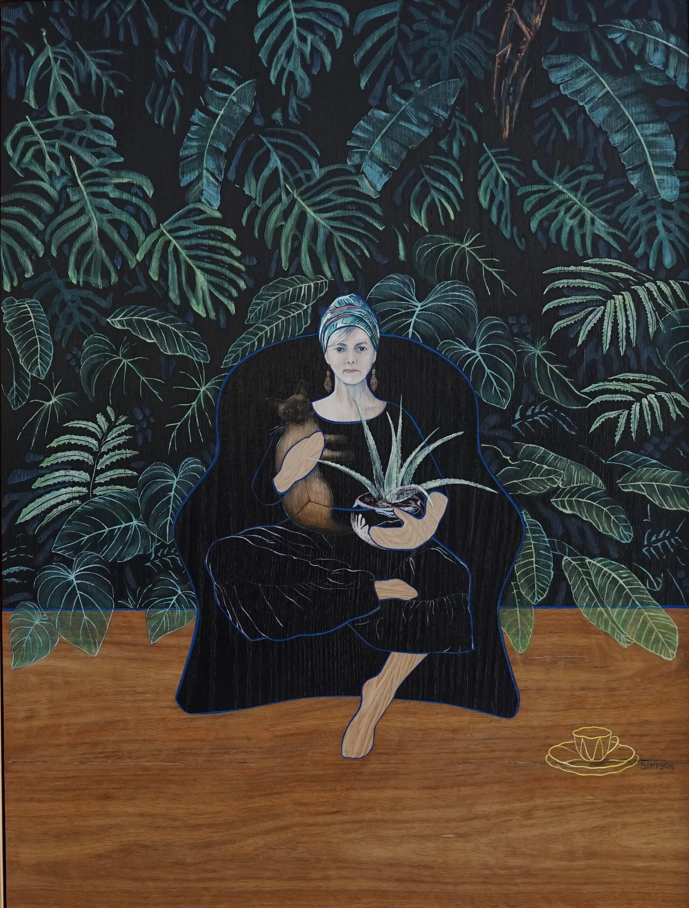Working outside of time in a studio on Turrbal land Amber lovingly crafts rich marquetry and oil paintings that invoke the stillness of this liminal and sacred space. ‘The world within and the world without’ weaves a transcendent narrative in her work as she introspectively contemplates the life within and the world at large as being inexplicably entwined.